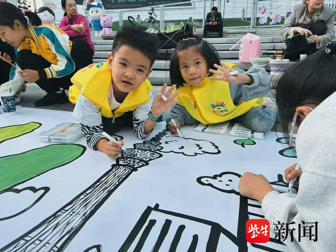 跳蚤市场的一侧,是街道妇联组织的“2025世界儿童日”巨幅涂鸦。15米长、1.4米宽的喷布铺满地面,琴湖风景、植树场景、垃圾分类桶的轮廓已经勾勒好。孩子们趴在地上认真涂画,颜色一点点铺开。妇联副主席俞虹也拿起画笔,和孩子们一起上色。“我们希望孩子知道,世界儿童日不只是节日,更是一次关于责任的表达。”她说。熊心怡蘸了蘸颜料,认真地告诉记者:“我要把地球涂成绿的和蓝的,这样才好看!”活动结束后,这幅画将被保留在街区,成为行人驻足的温暖风景。
