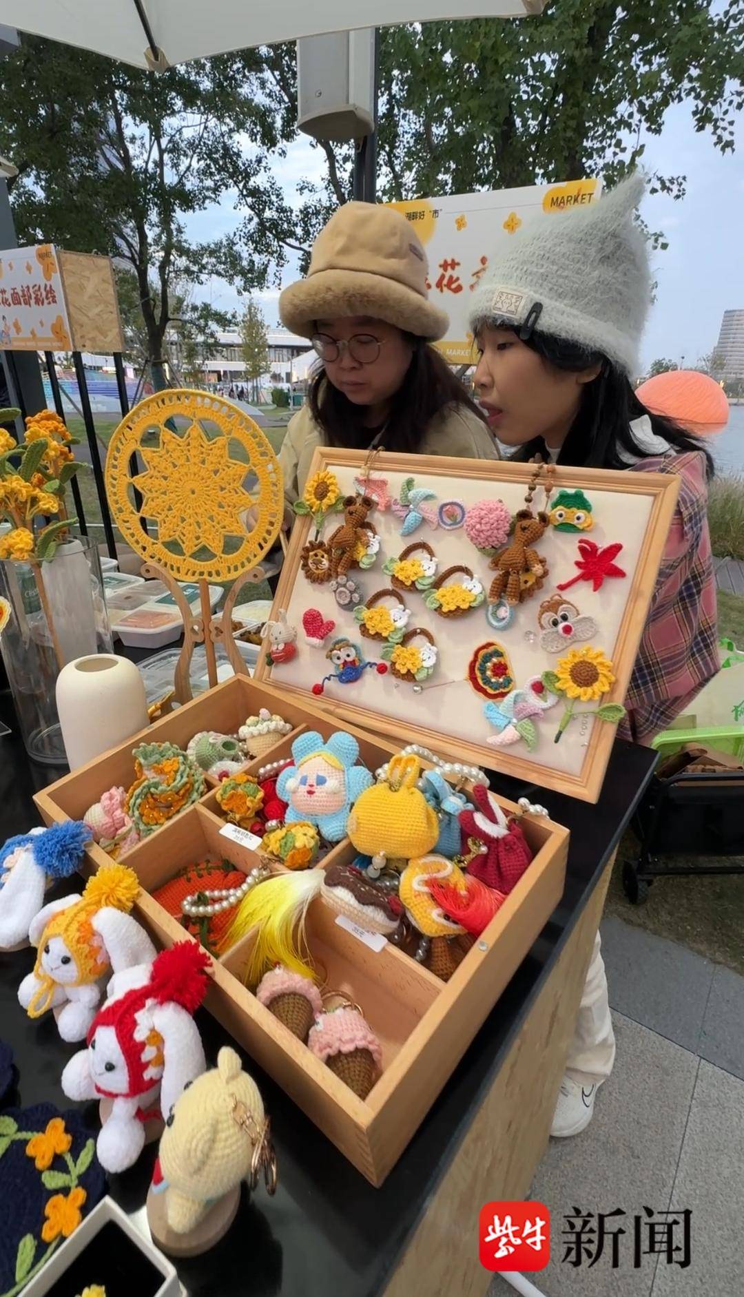 对面的“琴优铺子”区域,桂花香气弥漫。兴隆社区党总支书记、居委会主任李凤竹展示着一排桂花香囊和柿子造型的小摆件:“里面放的都是干桂花,香气淡淡的,既能做装饰,也能安神。”她笑着说,这些作品都出自社区阿姨们之手。琴优铺子由琴川街道琴优社区服务有限公司统筹,联合“解忧毛线铺”“海棠缝纫铺”等社区空间,发动居民参与手工制作。通过“海棠福卡”积分机制,志愿者参加活动可积累积分,在商圈兑换商品或服务。李凤竹说:“半天卖四五百元不算多,但每一分钱都回到社区,用来添置长凳、帮扶困难户等。大家更愿意出力,因为能看到成果就在自己身边。”