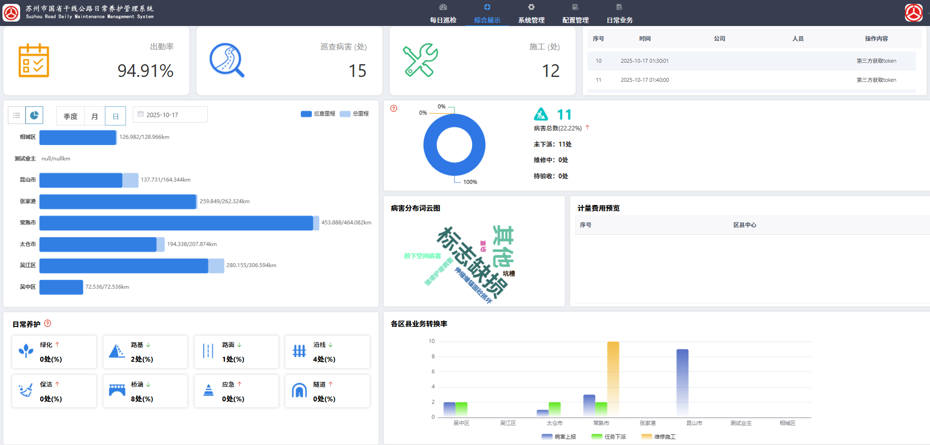 在感知端,苏州公路应用智能巡检车辆替代人工进行巡检,基于机器图像识别、AI智能识别算法、桩号经纬定位等技术,可以自动化智能识别路面病害和沿线设施的异常状态,实现自动化生成养护巡查报表和巡查日志,并完成工单闭环;截至2024年底,建设完成健康监测系统78座,74座桥梁、3处高边坡,2500余个监测设备像“神经末梢”般,实时捕捉结构安全隐患。