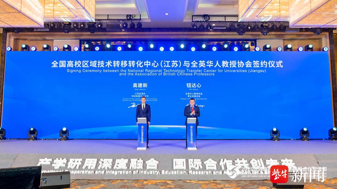 全国高校区域技术转移转化中心(江苏)与全英华人教授协会签署了合作备忘录。南京理工大学、苏州大学等高校与江阴高新区、苏州高新区等高新区,以及法国国家健康与医学研究院马赛癌症研究中心、白俄罗斯科学院新材料化学研究所等海外机构签署了10个三方合作协议。