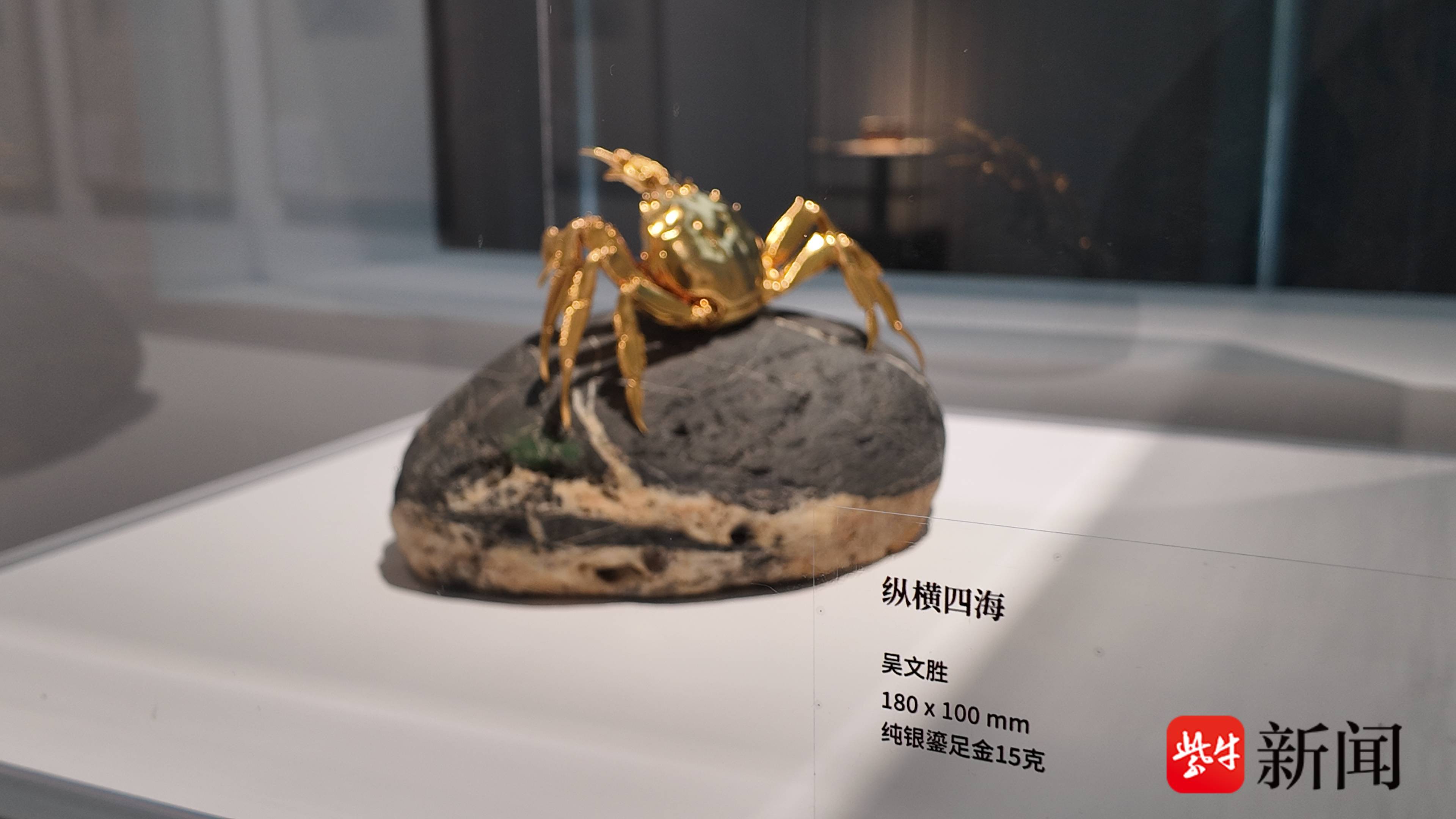 近日,张家港山姆会员店开业时推出的一只售价50万元的“黄金大闸蟹”陷入抄袭争议,并在网络上引发广泛关注。该产品被指抄袭珠宝设计师、非遗传承人吴文胜耗时近两年设计制作的原创作品,涉事产品随后紧急下架。10月30日,扬子晚报/紫牛新闻记者在苏州狮山大剧院“时间的风土:苏州手工艺的社会景观”展览现场,见到了吴文胜的原创正版作品《纵横四海》,目前该作品正在此面向市民游客免费开放参观,展期将从10月12日持续至2026年1月4日。