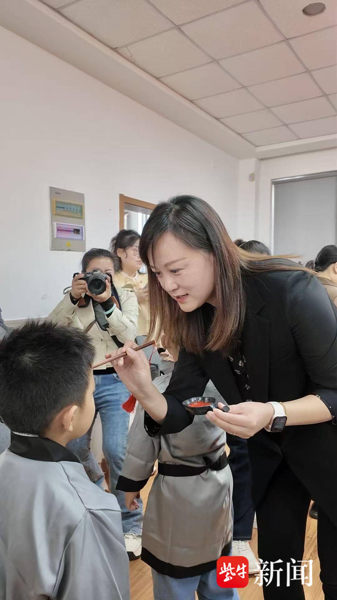 正衣冠、点朱砂、拜师礼……在入学礼环节中,同学们有的挺直腰背,努力让自己“更精神”;点朱砂时,一颗小小的红痣包含着教师们对孩子们的期待,更有不少家长举着手机记录下孩子们这一刻珍贵瞬间;行“拜师礼”时,同学们双手交叠于身前向教师代表鞠躬。仪式过后,学生、教师代表、家长代表依次上台为入学不久的“小萌新”们送上入学祝福。