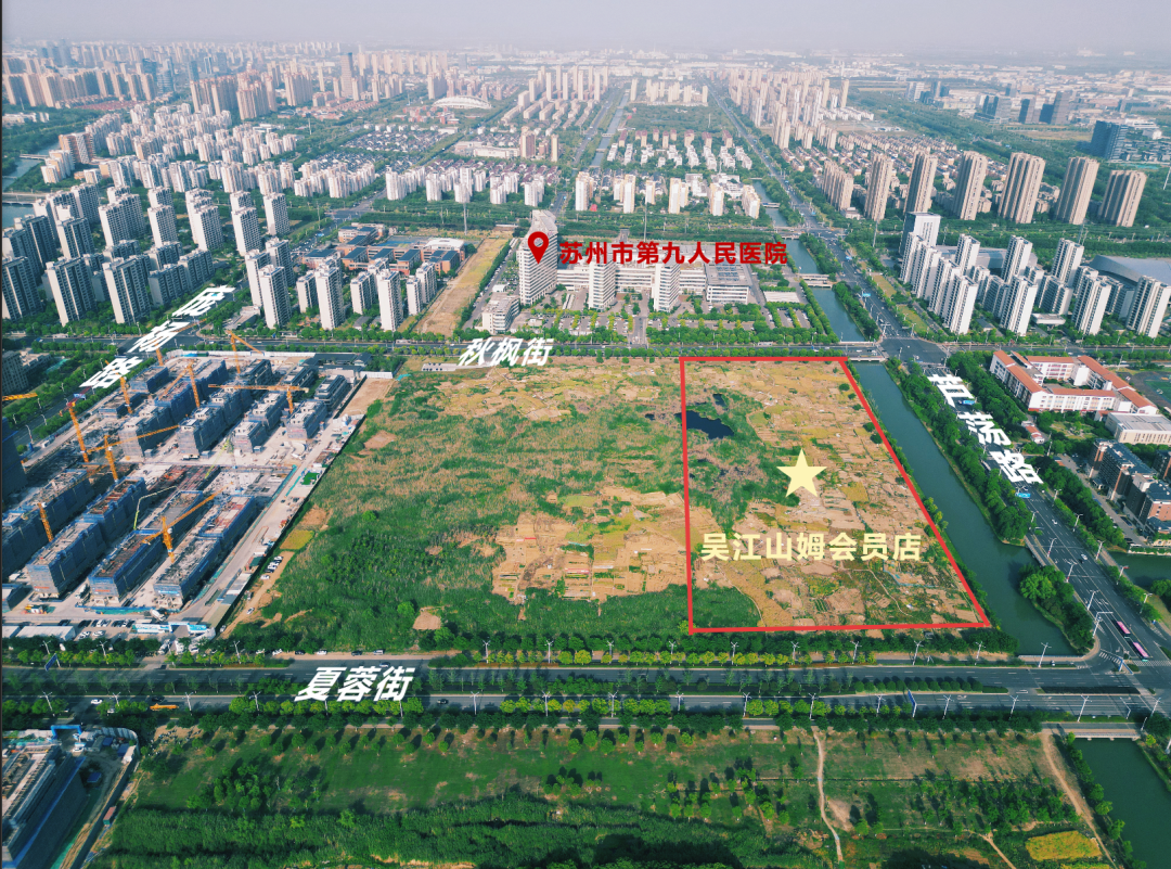 吴江山姆会员商店坐落于吴江太湖新城,具体项目选址为芦荡路以北、夏蓉街以东、秋枫街以西、规划路以南地块。
