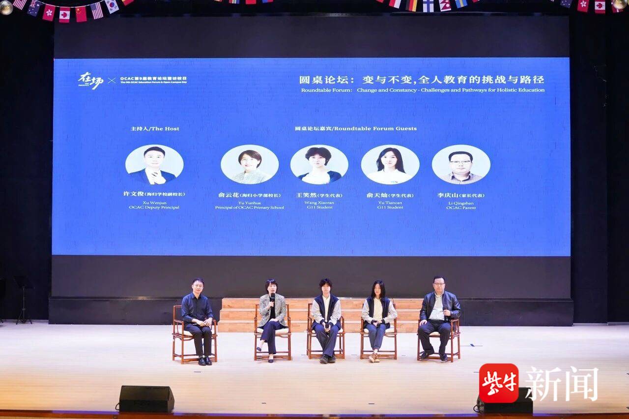 在海归学校副校长许文俊的主持下,由海归学校小学部校长俞云花、海归学校G11在读学生王笑然与俞天灿,以及家长代表李庆山组成的圆桌论坛以“变与不变,全人教育的挑战与路径”为主题,展开了畅谈。