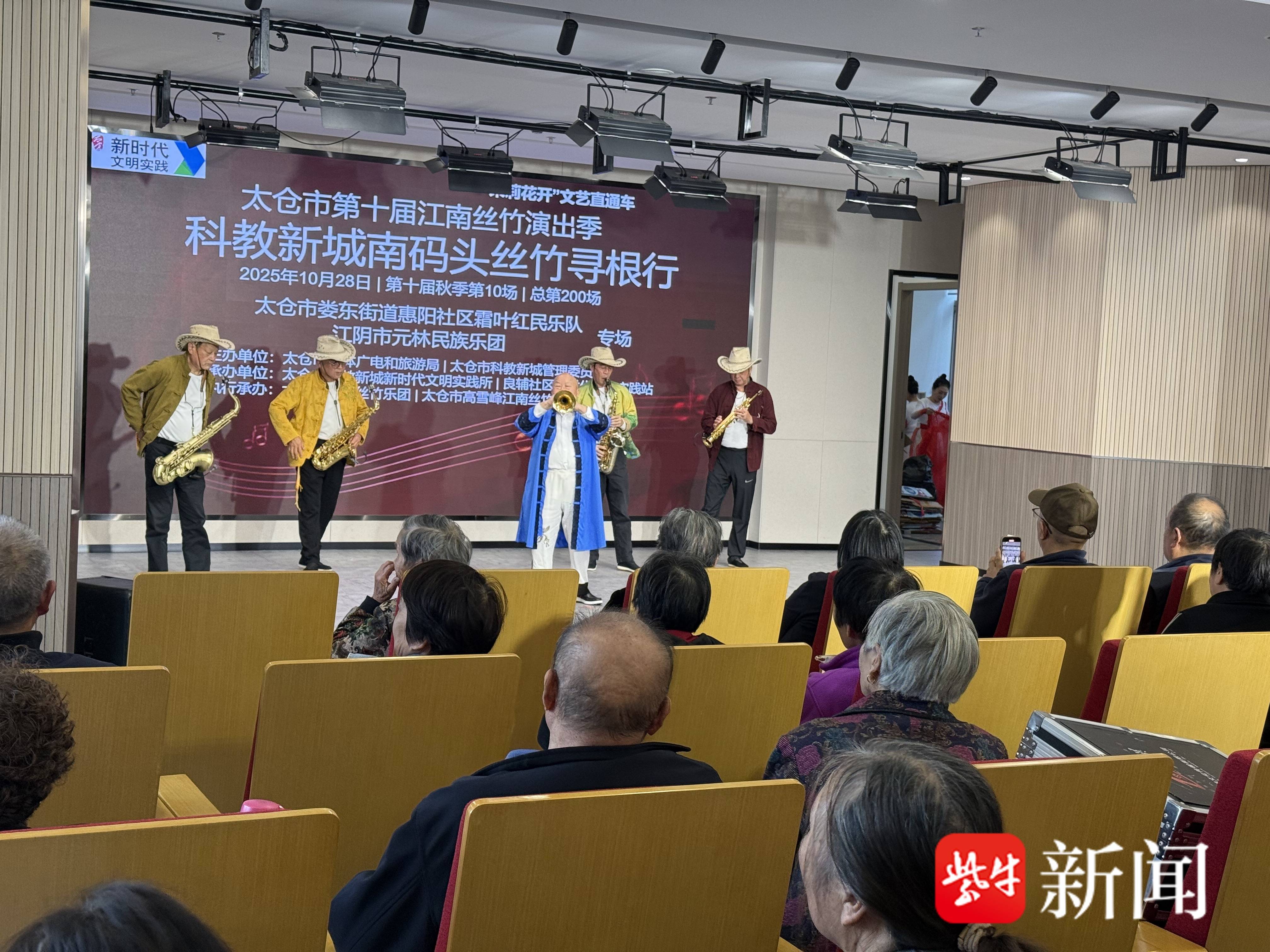 社区的温情,同样毫无保留地倾注于长者。一场“江南丝竹”专场演出正优雅奏响,琵琶的清越、二胡的悠扬、笛子的婉转交织融合,奏出传统文化的深邃韵味。