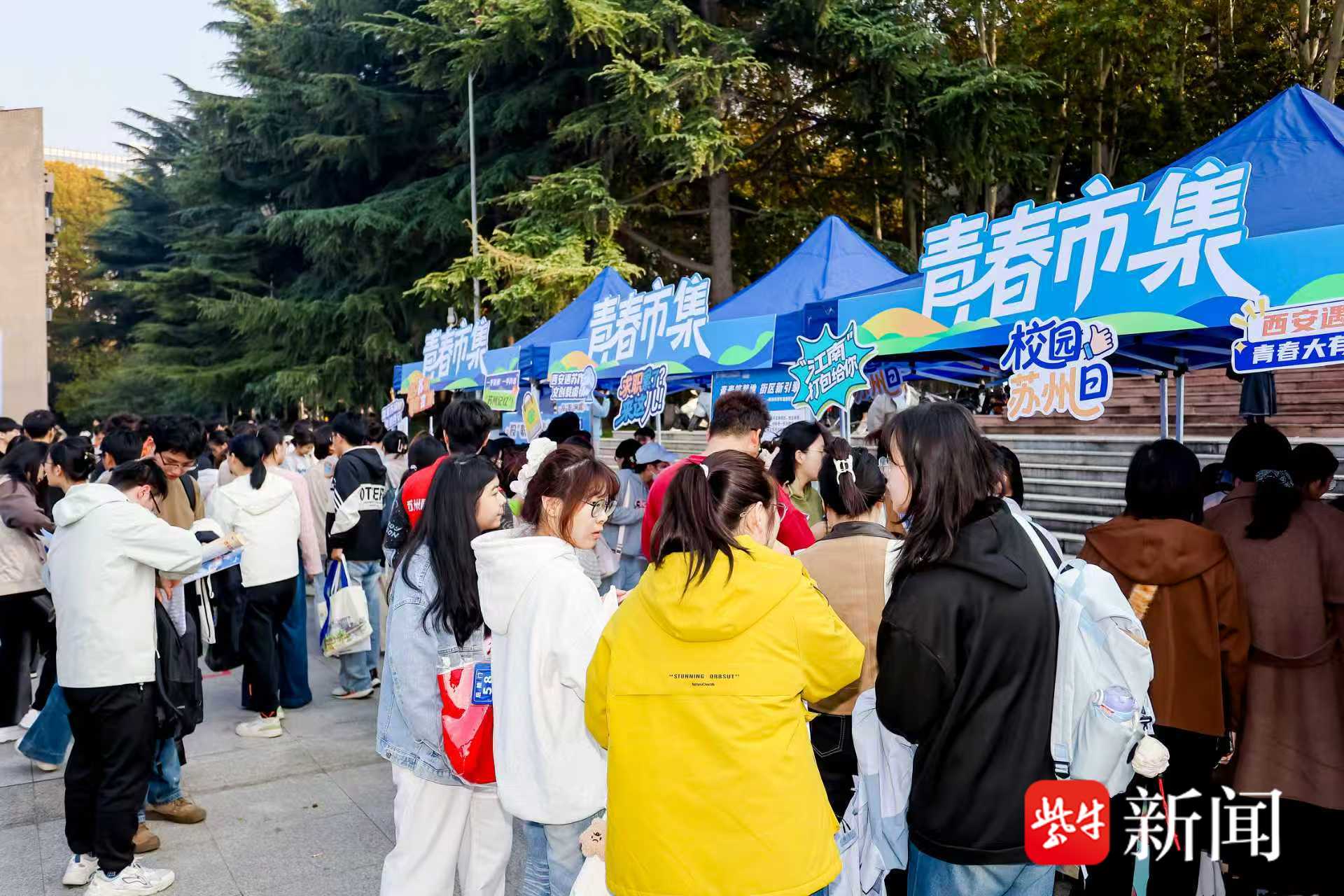 青春市集现场人头攒动,既有古琴表演、虞山印派篆刻等非遗体验,又有苏式糕团、特色美食品尝……求职探索与文化雅趣交织,创意涌动与生活烟火共存,学子们沉浸式地体验了一场苏州古今风华的深度之旅。