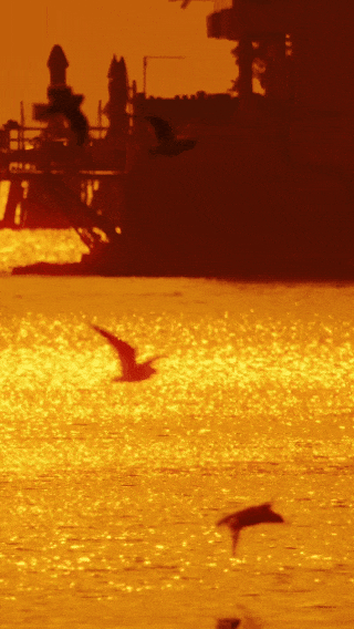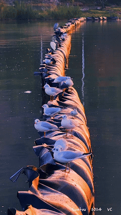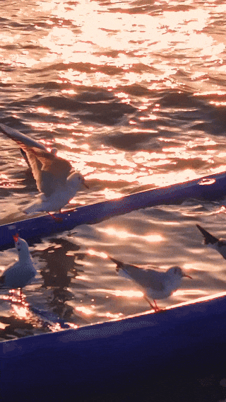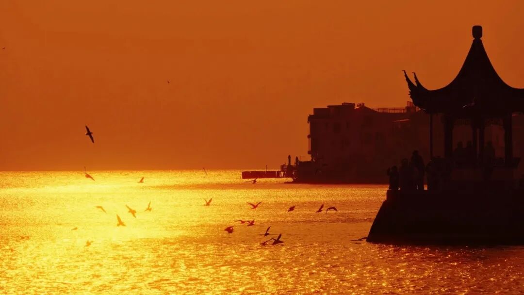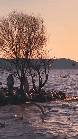 夕阳作伴,与鸥共舞
