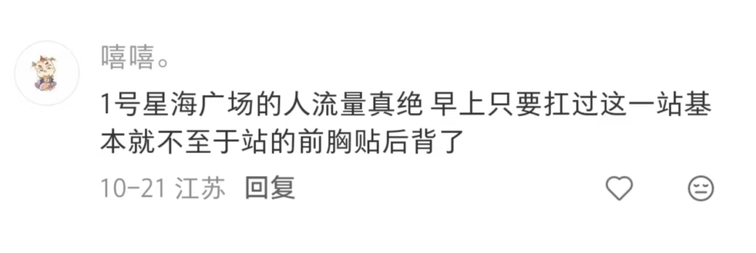 星海广场站周边有星海大厦、建园大厦、中银惠龙大厦、中海财富中心、苏悦广场、环球188、凤凰文化广场等写字楼集群。早高峰时段,星海广场站人潮涌动,一群又一群的金融人,手里攥着没喝完的咖啡,脚步匆匆。