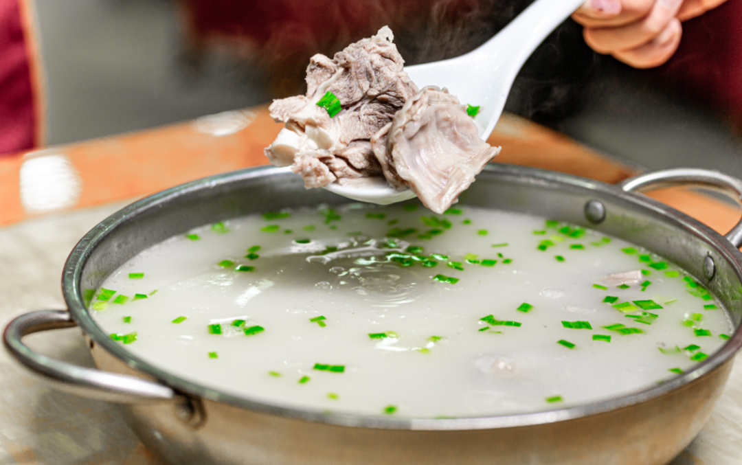 苏州人冬天有两次吃羊肉的大日子,一为立冬,一为冬至。羊肉有着益肾养肝、御寒祛湿的功效。喝羊汤时,要同时搭配凉性和甘平性的蔬菜,如白菜等,以起到平衡养生的作用。羊肉温热助阳,所以热性体质,容易上火的人不宜食用,有发热、牙痛、口腔溃疡的人也最好少食,以免加重症状。此外,吃完羊肉后不宜马上饮茶,否则脾胃不适。