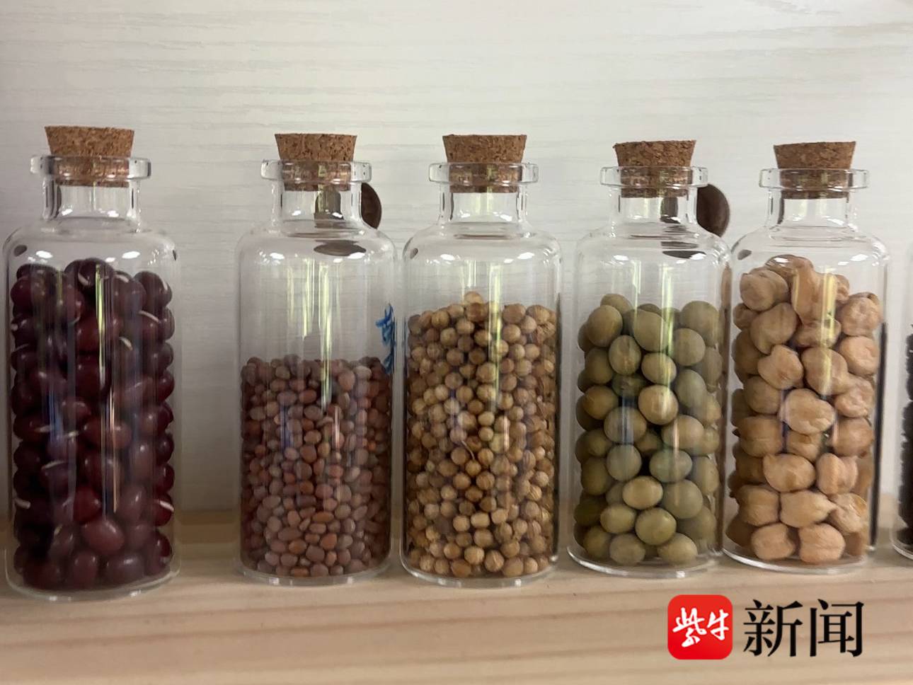 推开寒山社区“种子博物馆”的大门,紧凑而精致的布局令人眼前一亮。记者看到,几十个装有各类种子的透明玻璃小瓶,在展架上整齐排列,标签清晰标注着种子名称——既有红豆、小麦等常见品种,也有眼镜豆、人面子等罕见品类,还有孩子们亲手带来的银杏果、西瓜籽,涵盖五谷、果蔬、花卉三大类。