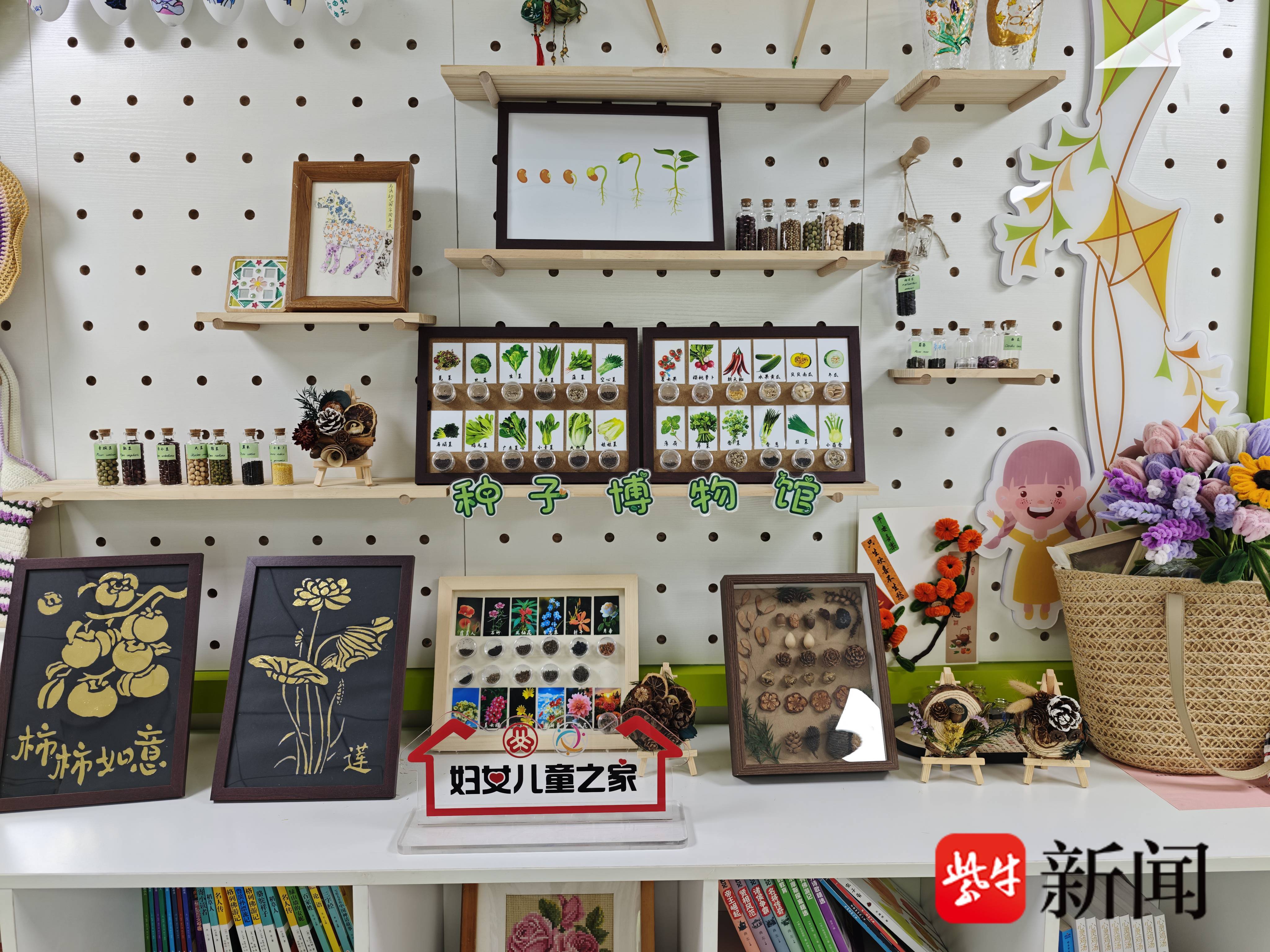吴昉琰表示,“种子博物馆”改造之初,社区就特意征求了孩子们的想法。“想要能大胆表达的地方!”孩子们的纯真诉求,让社区特意增设了儿童议事角。陈苏云小朋友就是“小小议事员”之一,她此前提出“制作种子工艺品”的建议,如今展架上已新增了各类种子冰箱贴、毛线花等手作。“我的建议被采纳了,感觉自己也是‘博物馆’的小主人!”
