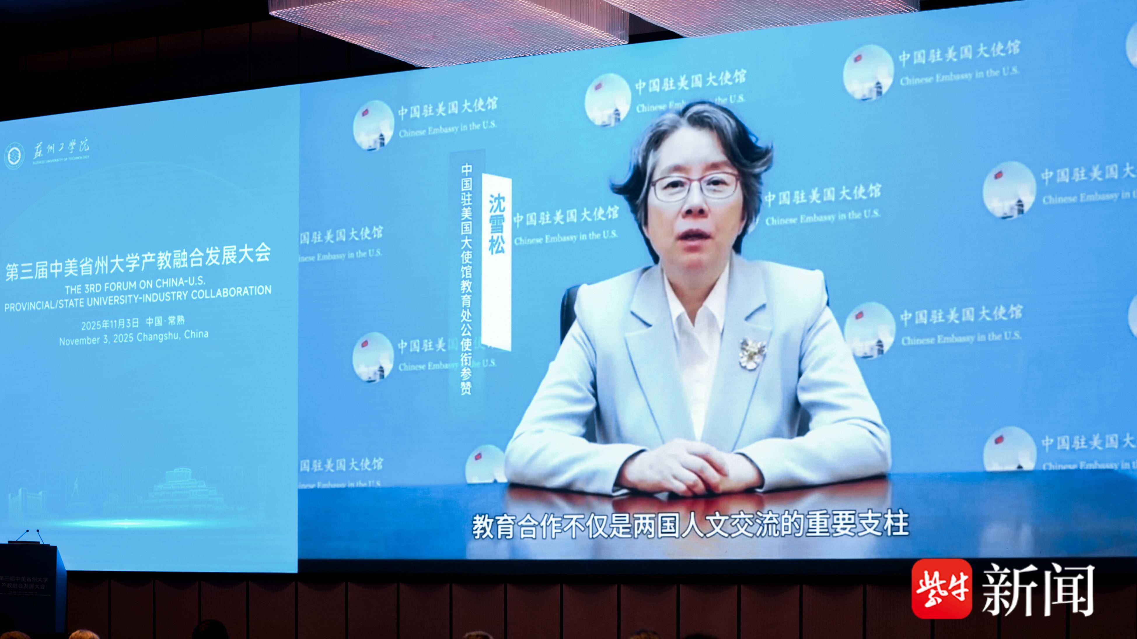 沈雪松在致辞中指出,中美省州大学产教融合发展大会自创办以来,通过深化人才培养和科研创新,充分发挥“地方推动、高校引领,产业参与、青年互学”的独特作用,成为丰富中美教育交流,推动地方合作的新亮点与新通道,生动体现了中美关系互利共赢的本质属性。她强调,未来中美双方应继续秉持开放包容、合作共赢理念,突出产教融合特色,推动人才培养、科学研究和社会服务协同发展,共同为深化中美教育与人文交流,增进两国民间友好作出新的更大贡献,为中美关系稳定健康可持续发展注入源源不断的正能量。