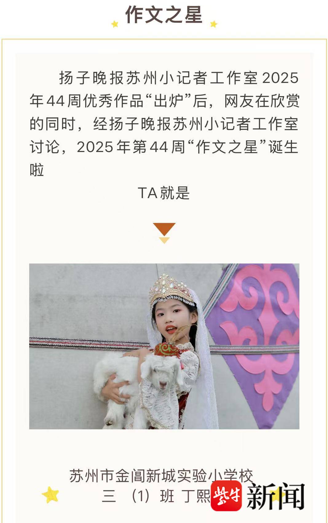 “它的身体宛如会移动的棉花糖,圆圆的眼睛亮晶晶,就像两颗璀璨的夜明珠。”这段充满童趣的描述,出自苏州市金阊新城实验小学校三(1)班丁熙桐的笔下。文中,她以孩子纯真又细腻的视角,把对萌宠的喜爱展现得真切又动人。