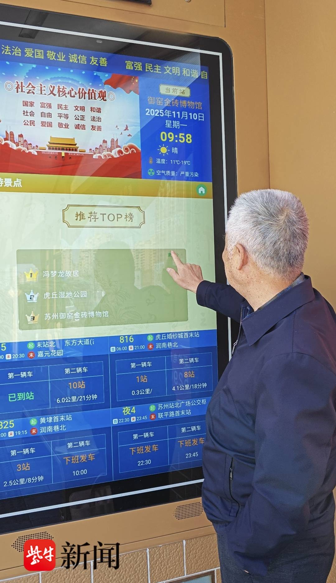 座椅能加热充电,触摸屏可直接对话,苏州试点智能公交站台点亮市民候车时光