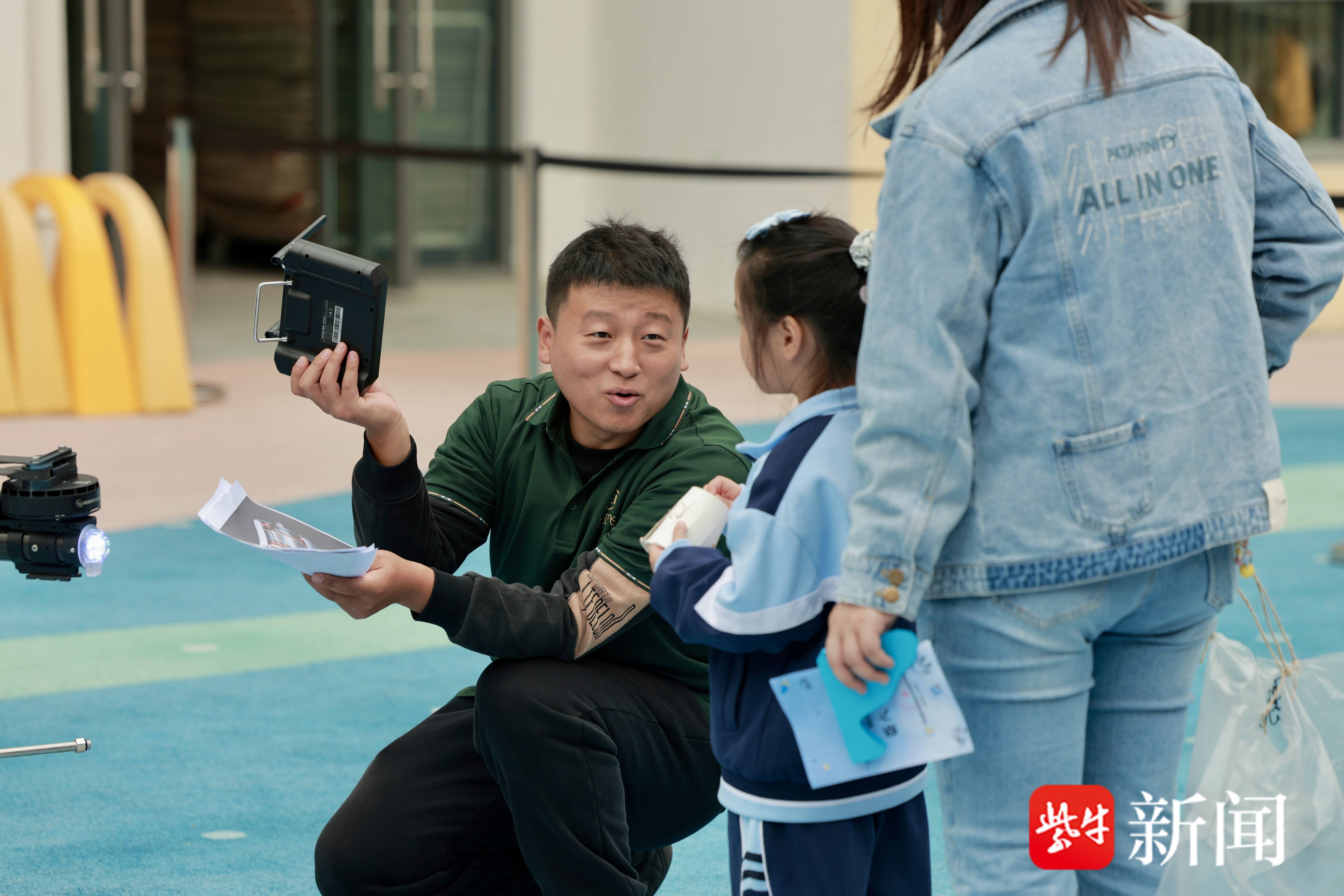 记者走近幼儿园,园内浓厚的科创氛围扑面而来,一条“星空蓝”地毯铺陈开来,宛如一条通往未来的科幻隧道。大班的“小小探索家”早就翘首以盼,他们兴奋地拉着爸爸妈妈的手共同开启这场科学探秘之旅。
