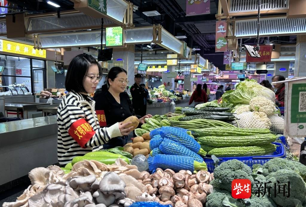 在陆巷湾菜市场,来自甪直实验幼儿园的“小小市场体验官”们认真开展着实践活动,学习文明知识、了解食品检测有模有样;文明观察员们逐一走访市场商户,对诚信经营、门前三包、服务质量等进行综合打分。