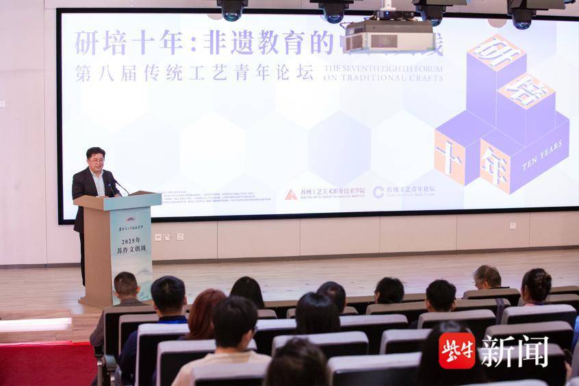苏州工艺美术职业技术学院教务处处长赵罡主持开幕式,学校党委书记范卫东致欢迎辞,他表示,作为深耕传统工艺教育的院校,苏州工艺美院将持续以产学研融合为纽带,推动非遗教育从实践探索走向体系化建设,为传统工艺振兴注入青年力量。