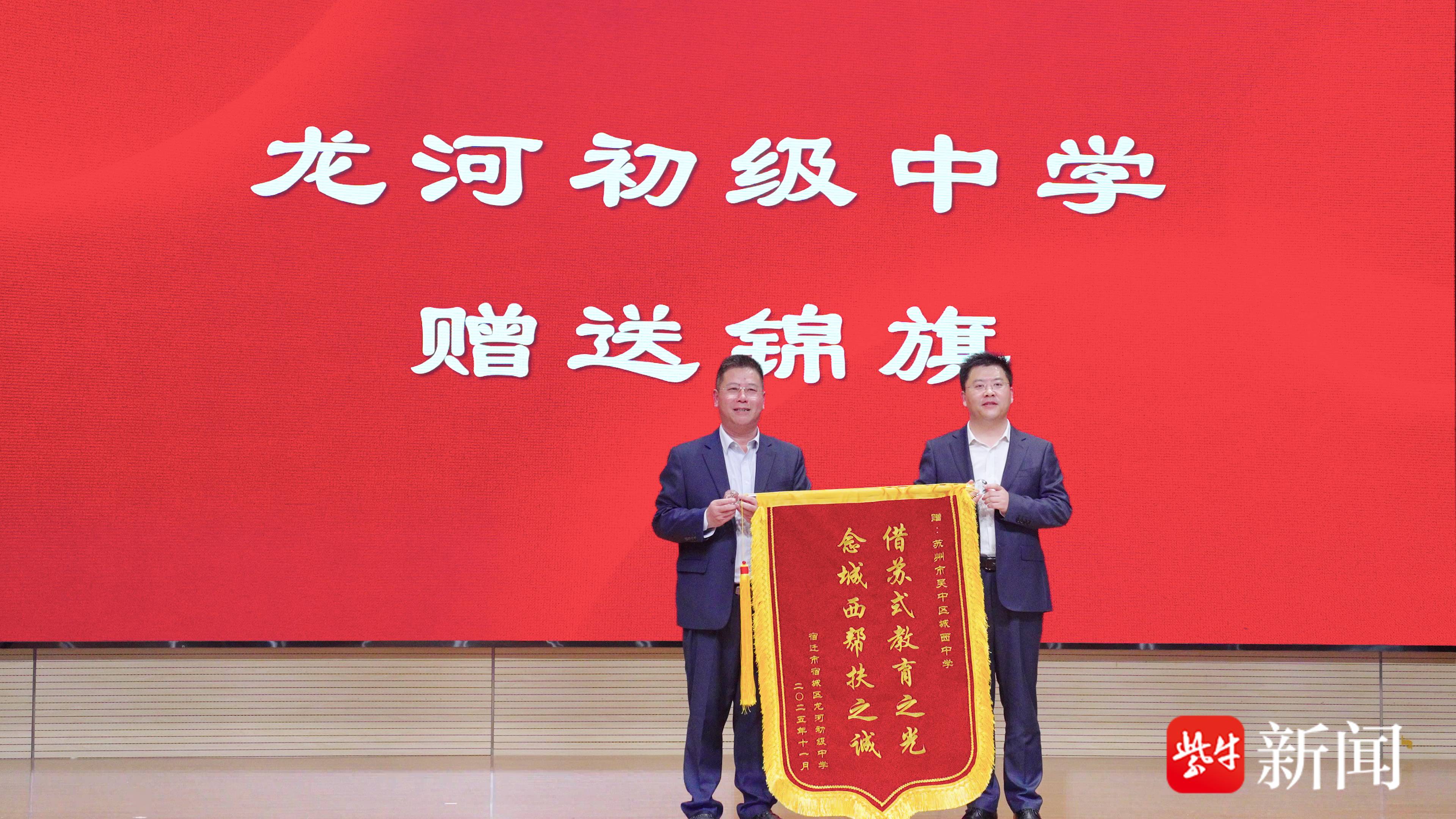 城西中学积极响应南北挂钩合作的政策,和宿迁龙河初级中学结对帮扶。宿迁市宿城区龙河初级中学向城西中学赠送锦旗。华英集团校、江苏省木渎高级中学等学校也发来祝贺。