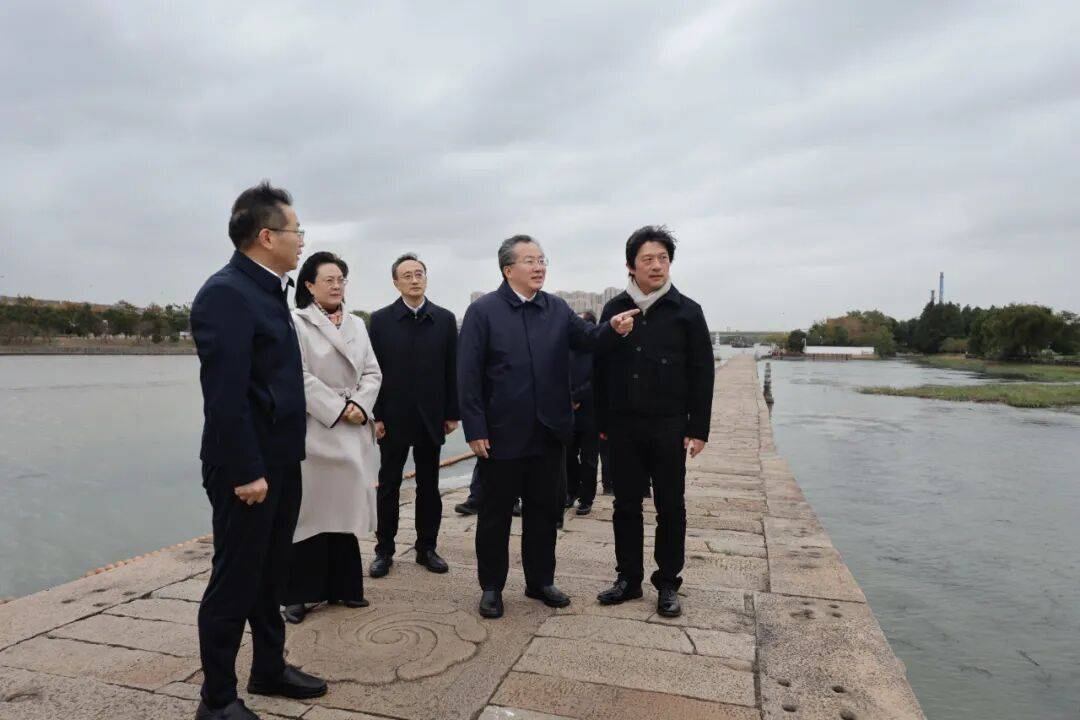 范波实地察看古桥风貌,听取大运河文化带苏州段建设情况介绍。