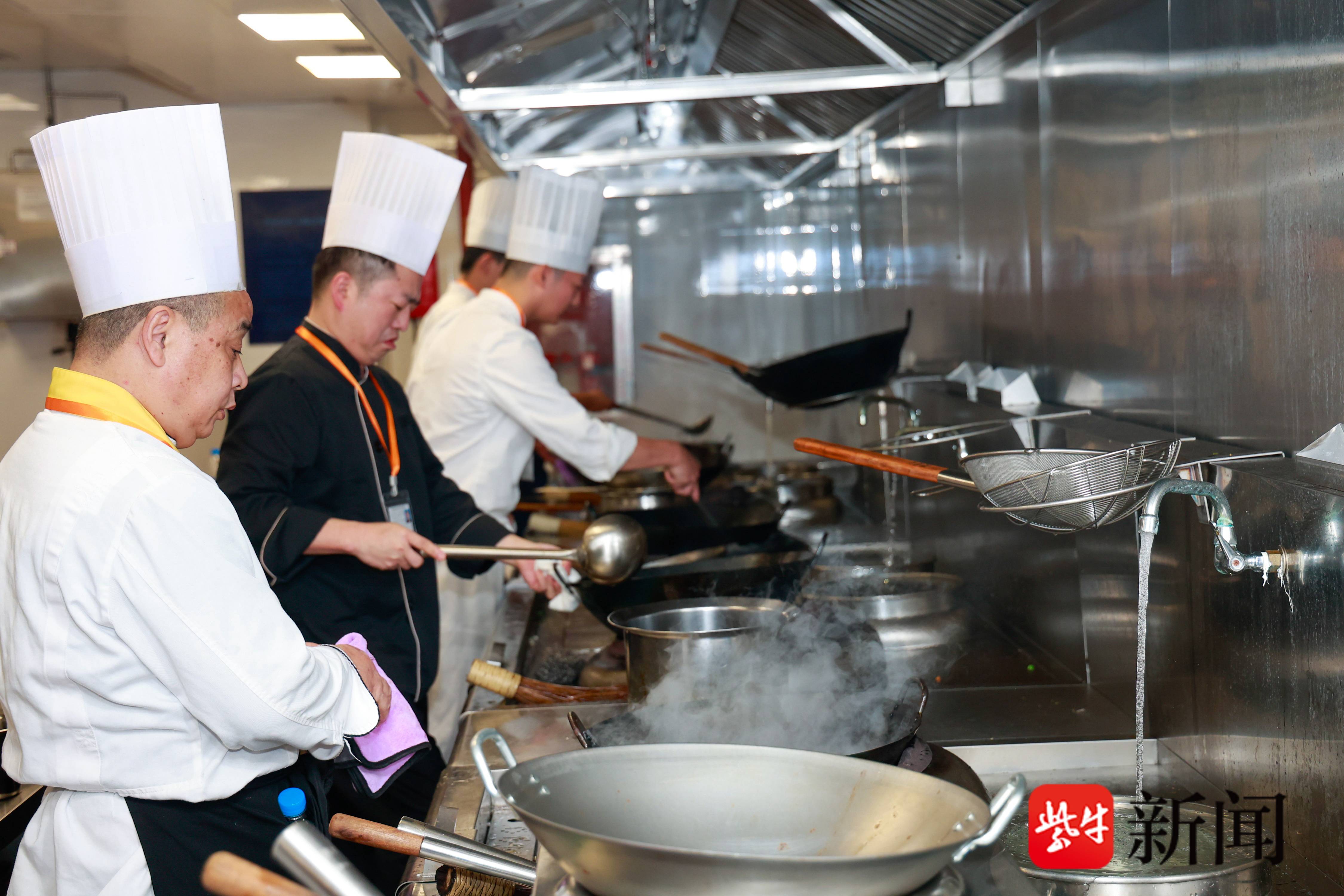 当日上午的团体赛中,各酒店团队围绕不同主题,设计并制作宴席。参赛厨师张建华和他的团队此次推出的是“梦龙水乡宴”。严选时令鲜物,其烹饪技法与菜品意境巧妙呼应明代文学巨匠冯梦龙著述中的典故与意象。“比如芦花鸡、四喜鱼头汤,都是有来头的。”张建华表示,“我们希望将文学篇章转化为可品可鉴的舌尖风雅,让食客在用餐中感受相城的历史文脉。”