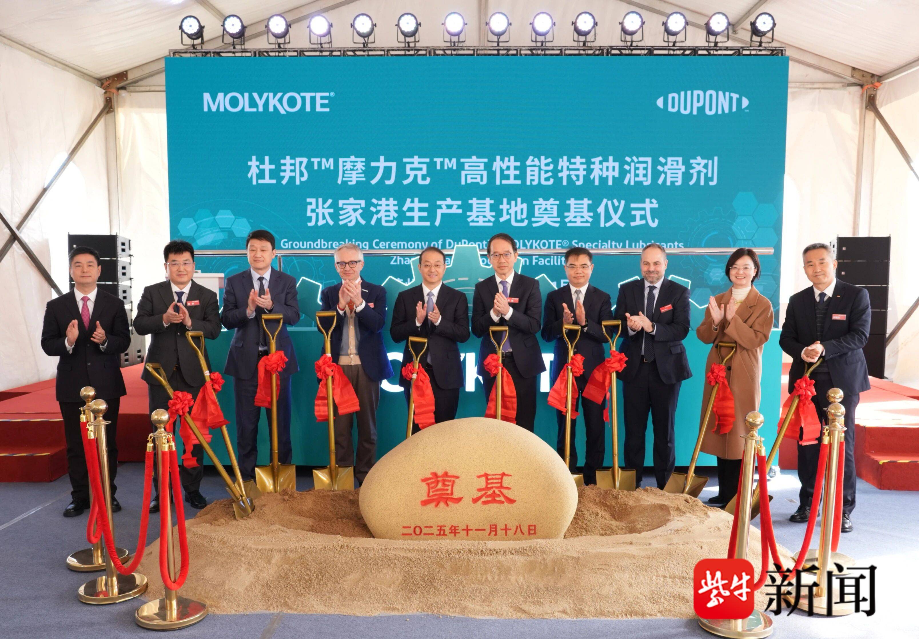 2018年,杜邦公司与张家港市签订杜邦中国制造基地(张家港)项目,用于承载杜邦未来在中国的主要投资。其中首期胶粘剂项目已顺利投产运营,此次奠基的高性能特种润滑剂项目是杜邦在张家港基地的又一重要投资,产品包括特种润滑脂、特种油膏等,主要应用于汽车、电子、能源等工业领域。