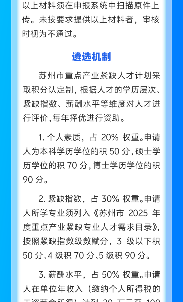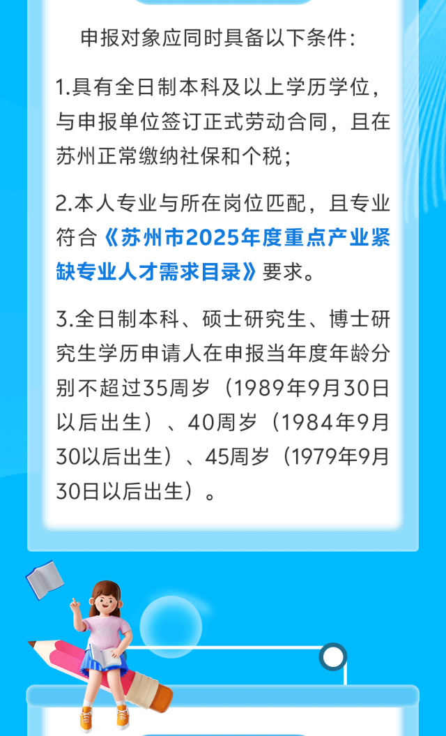 近日,苏州市委人才办、市人社局、市工信局、市商务局联合印发《关于组织申报2025年苏州市重点产业紧缺人才计划的通知》(苏人保开〔2025〕8号),符合条件的申请对象可进行申报。