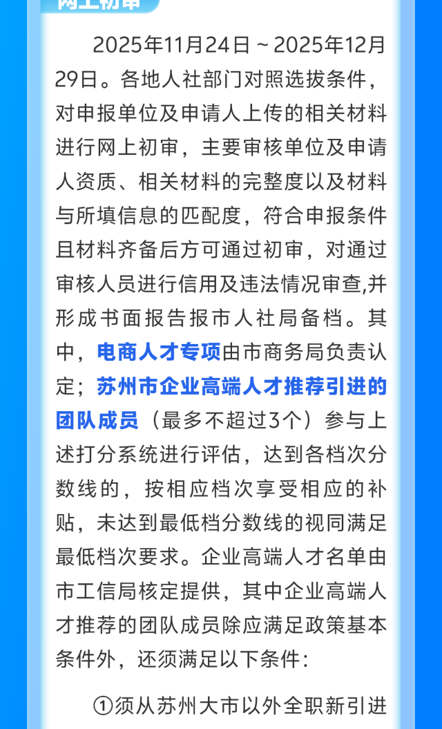 (3)缴纳地:需在苏州大市范围内缴纳。缴纳时限:在苏州申报通知发出前(2025年11月24日)已按规定在苏州范围内缴纳社保。