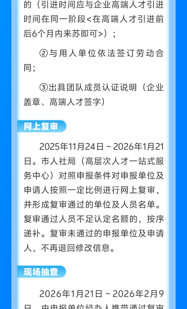 (1)须从苏州大市以外全职新引进的(引进时间应与企业高端人才引进时间在同一阶段);