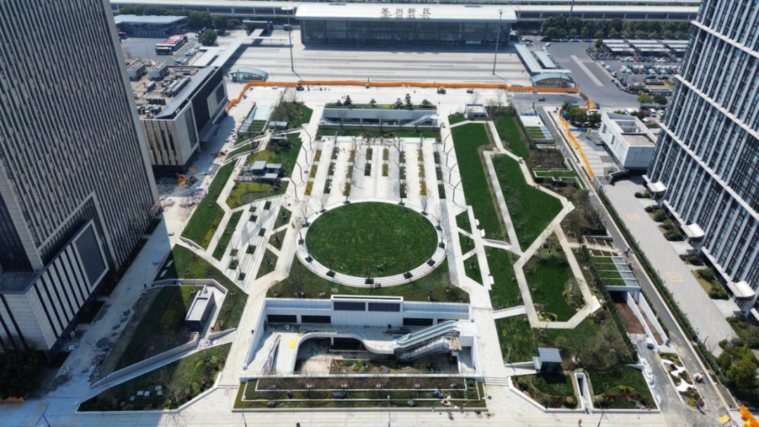 项目位于城铁南路和沪宁城际新区站铁路站房西侧、城际路东侧,南侧为汇融广场,北侧为嘉骏峰庭小区。项目总建筑面积约3.8万平方米,主要建设内容为沪宁城际铁路苏州新区站P+R改造及地下两层空间开发。