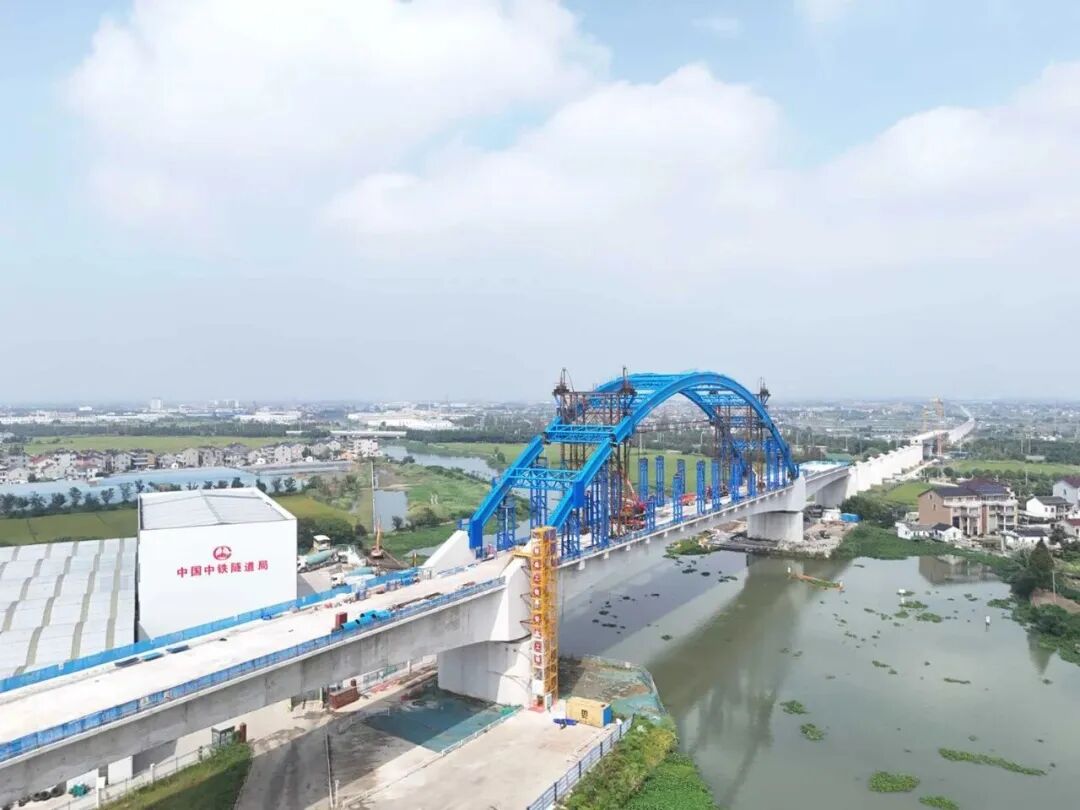 苏南特大桥地跨苏州吴中、吴江两个行政区,总长25公里,多次跨越既有公路、河流湖泊、居民区、工业厂房等建构筑物,技术要求高、施工难度大、安全风险高,是通苏嘉甬高铁控制性工程之一。