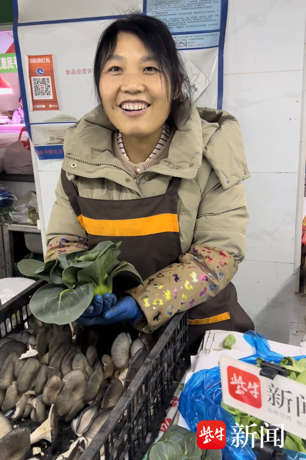 清晨8点,在苏州东环农贸市场的一家蔬菜摊位前,围满了前来采购新鲜蔬菜的市民。摊主程女士一边麻利地装袋、过秤,一边告诉记者:“降温后,每天都有很多老顾客来买本地矮脚青,它已经到了口感最好的时候!”