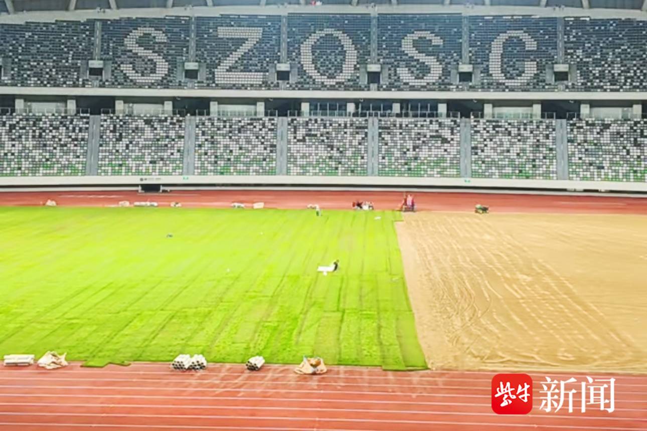 苏州奥体中心体育场铺设了新草坪