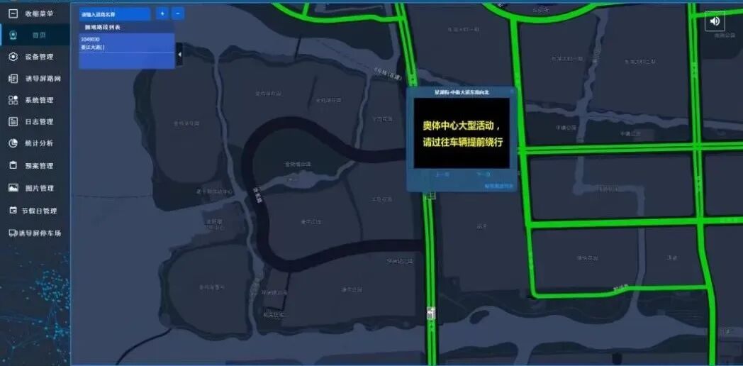 根据出入口分布情况及以往奥体中心活动散场经验,对园区主要干道采取相应的信控策略。届时,我们将结合路面流量变化情况,通过平台信控与地面警力配合,快速疏散路面车流。重点关注路段包括:中新大道东、星塘街、星体街、港田路等。