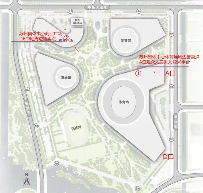 苏州公交2条专线护送,上车点超好找,请认准体育中心东5号门对面“奥体中心东”公交站——