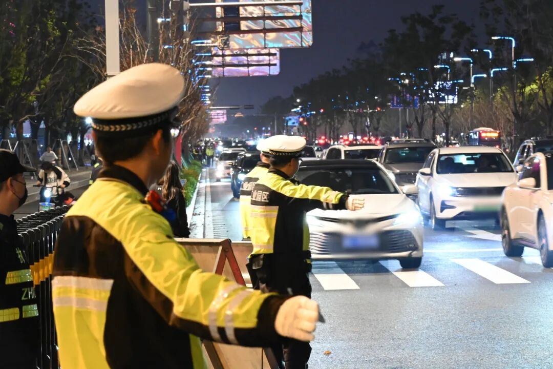 散场期间,星塘街西1门由入口临时调整为出口功能,同步打开路口中分隔离护栏,允许车辆左转往南驶离,结合星塘街绿波保障能够大幅提高车辆疏散效率。
