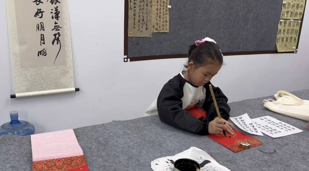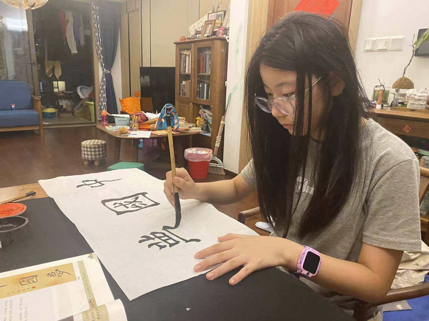 从一年级偶然接触书法,到如今坚持四年,袁奚若用日复一日地坚持,在笔墨世界里书写着属于自己的成长故事。对她而言,凝神静气书写的时光,不仅是技能的打磨,更是一种独特的放松方式。遇到难写的笔画,她会反复琢磨老师教授的要领,观察范字的结构布局,再一笔一画地练习,直到找到满意的感觉。袁奚若告诉记者,会把书法当做永恒的爱好,在这条道路上走得更远。
