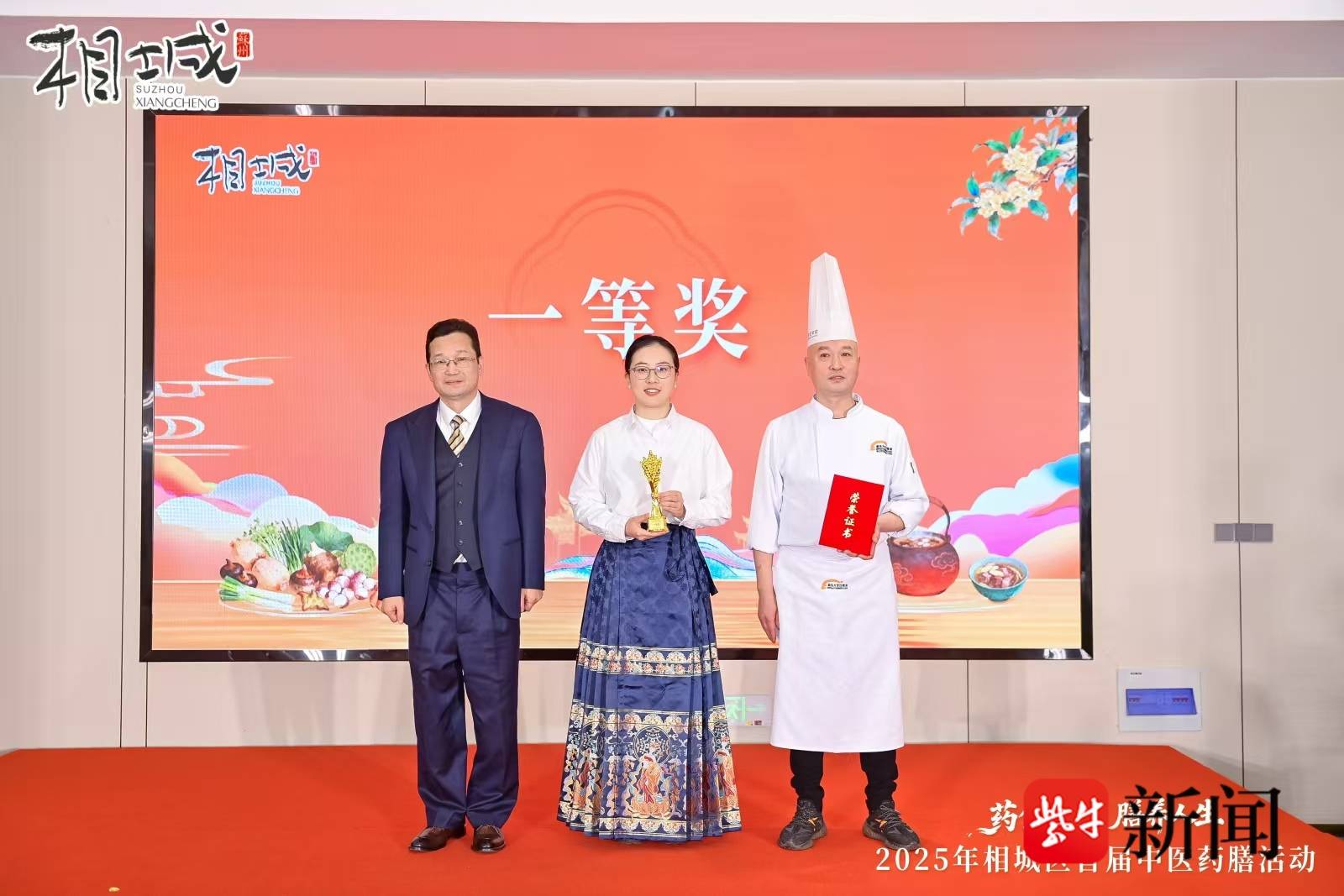 近日,苏州市相城区首届药膳大赛圆满落幕。本次大赛吸引了众多队伍参与,各代表队围绕药膳制作展开激烈角逐。最终,度假区(阳澄湖镇)代表队凭借出色的现场厨艺发挥与精彩的讲解表现,在众多参赛队伍中脱颖而出,成功摘得一等奖桂冠。