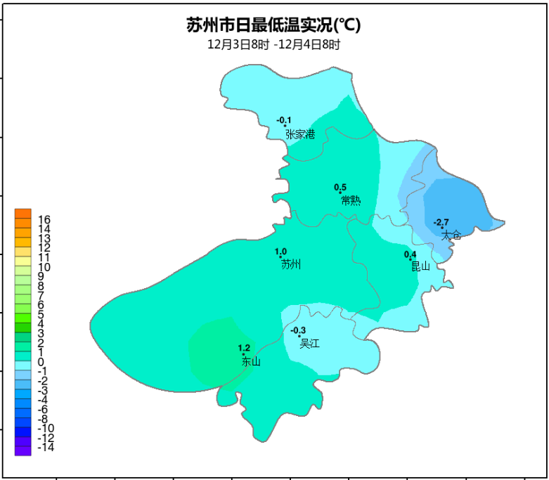 今早苏州站最低气温1.0℃