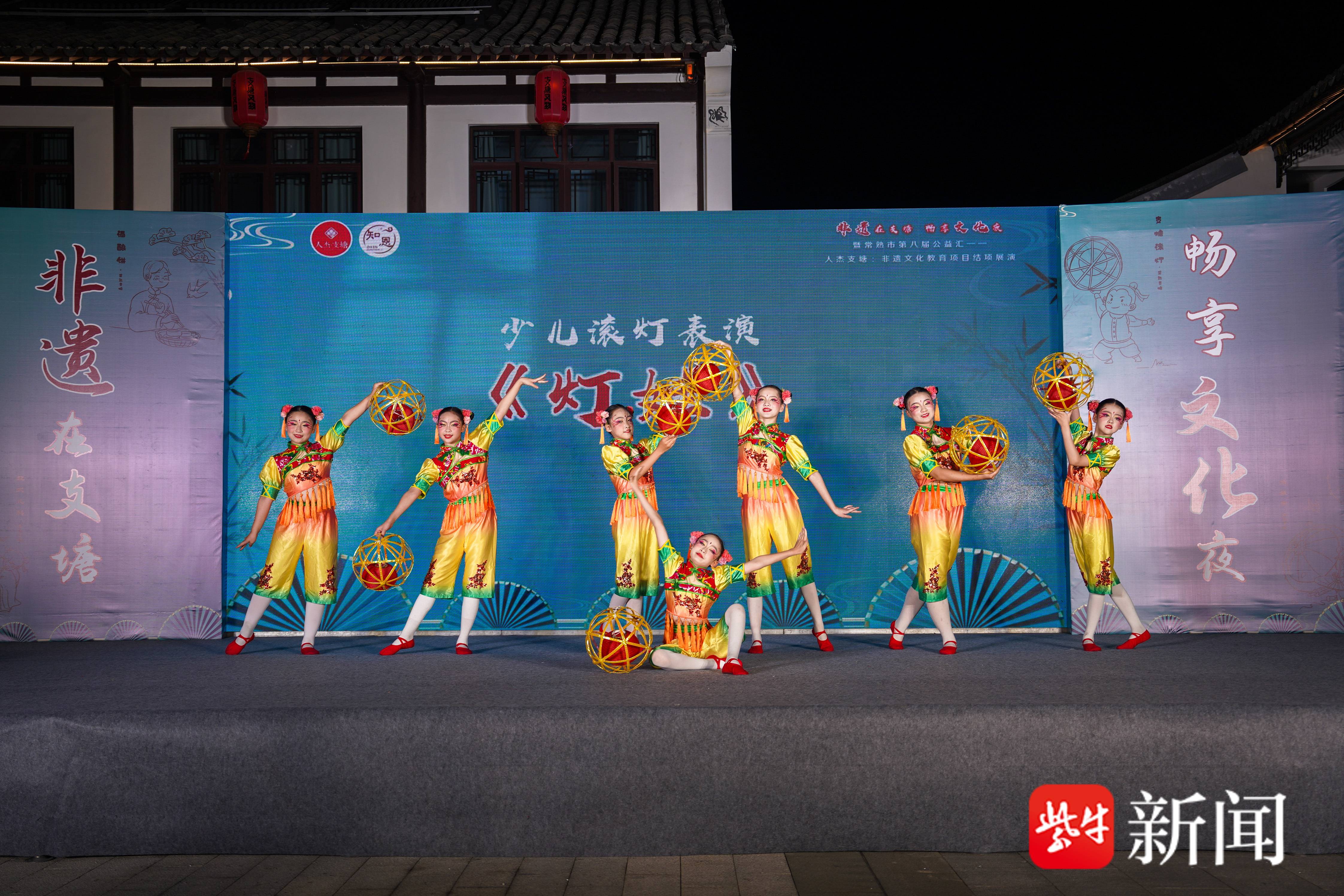 社区同样是滚灯的另一条生命线。市镇、何市、任阳等社区的暑托班把滚灯体验课列为固定项目;“风物季”市集、中医义诊活动、统战系统的文化体验日……滚灯这些年几乎参与了支塘所有“大事小情”。滚灯的舞台,从村口晒场延伸到了风物街区、文化馆、商圈市集,也延伸到了更远的地方:扬州大运河博物馆“精彩非遗”季、海外侨界联谊……支塘的滚灯成了“走出去”的代表性文化符号。