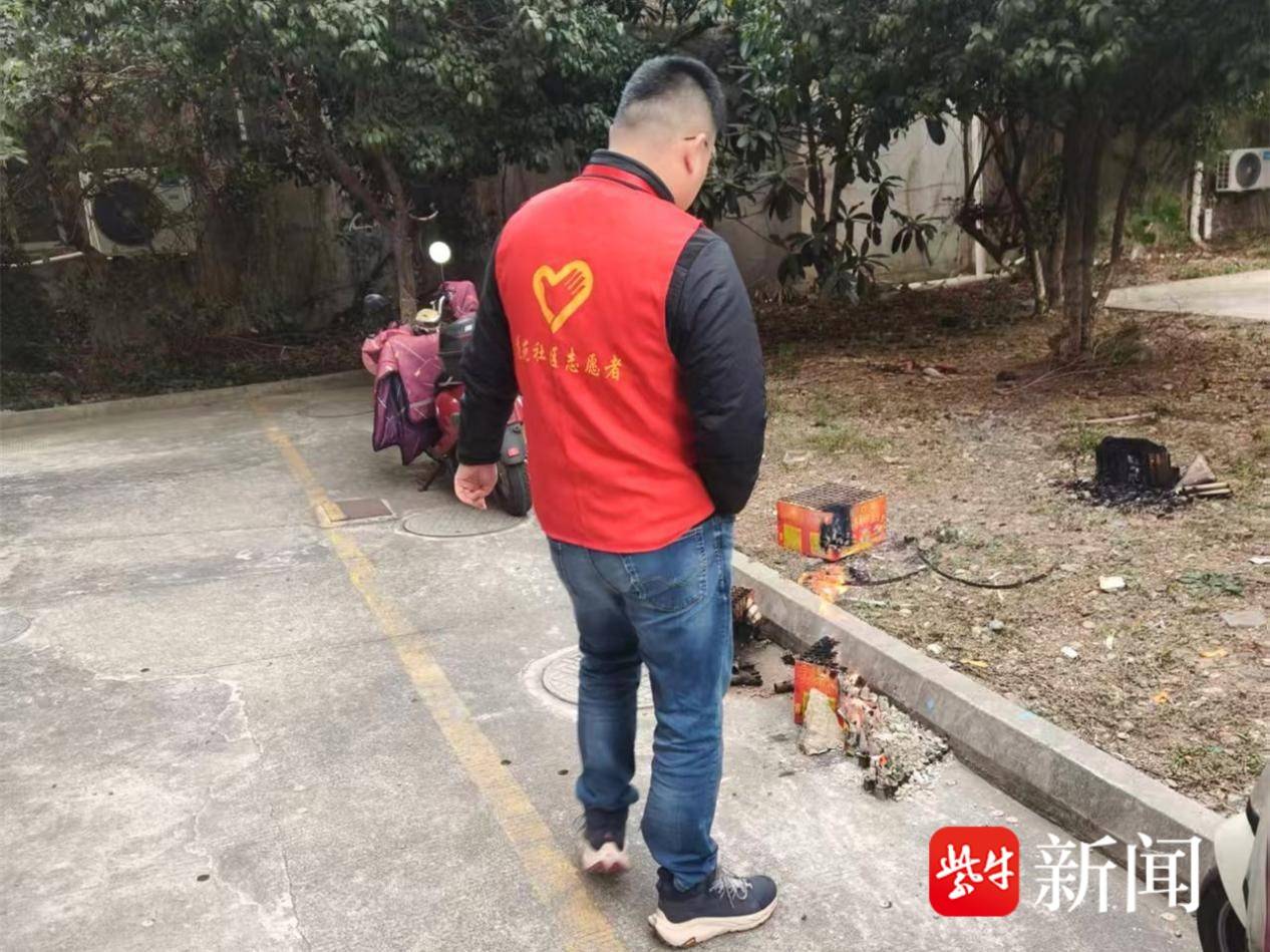 近日,苏州市吴中区木渎镇花苑社区党委结合“上门送学”活动,组织工作人员深入辖区走访老党员。当队伍行至香港花园小区时,工作人员敏锐地察觉到潜在风险:一户居民正操办喜事,其燃放后的烟花爆竹残留未完全熄灭的零星火星。恰逢当日风势较大,火星随风飘散至邻近的电动车停放区域,而部分电动车覆盖的棉质挡风被属易燃物品,现场形成了“风助火源、火靠易燃物”的明显火灾隐患。
