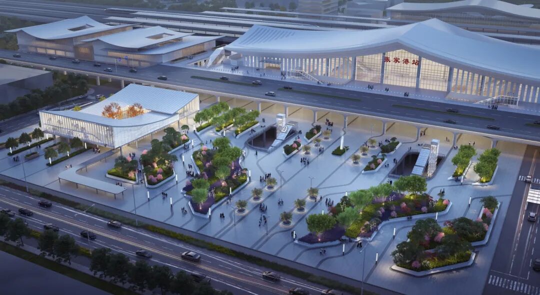 张家港东站房建筑面积约2万平方米,配套建设约1.2万平方米的地下停车场及1400平方米的轨道交通主体结构。新建东站房将通过地下出站通道有效连通东西站房,并利用桥下空间设置专用换乘通道,实现多种交通方式的无缝衔接。