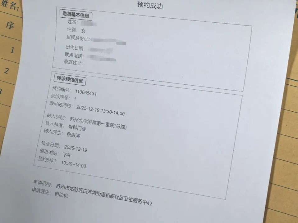 “以前约专家号都要拼手速,现在家庭医生很快就帮我提前约到了19号下午苏大附一院张洪涛主任的号,太方便了!”和泰社区居民汪卫珍说。