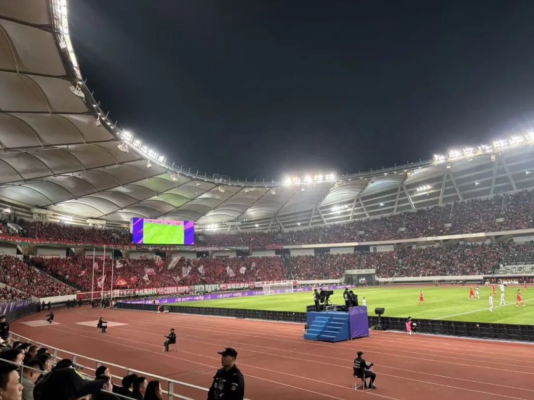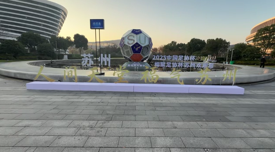 为保障此次比赛顺利举行,苏州奥体中心体育场草坪全面换新——提前3个月开始进行草皮维护,甄选优质草皮、精准配比、科学混播、精密铺设,今晚呈现的是一块符合国际级赛事标准的足球场,这片场地也拥有江苏省第一张由国际足联出具的天然草比赛场地质量检测认证证书。