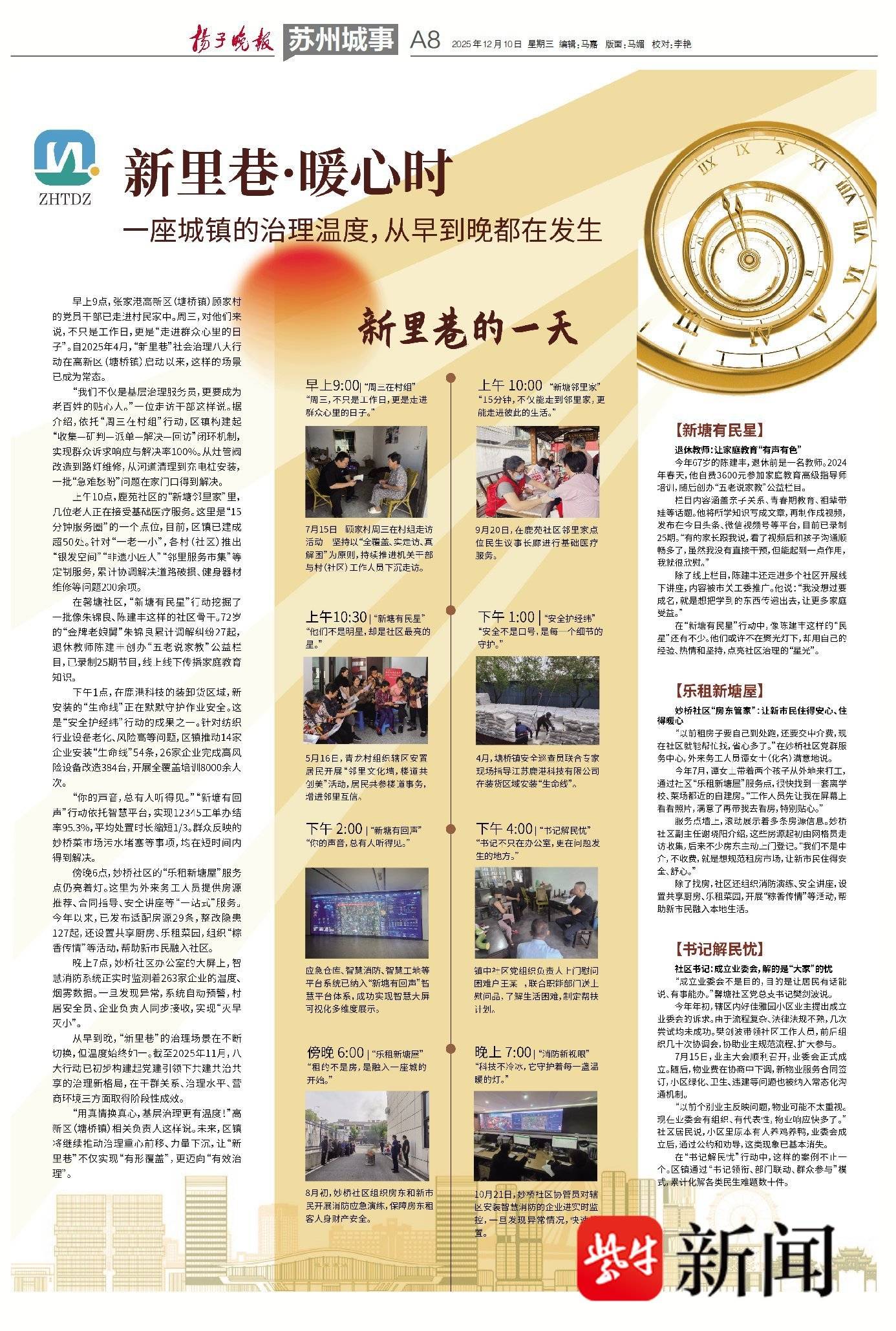 “用真情换真心,基层治理更有温度!”高新区(塘桥镇)相关负责人这样说。未来,区镇将继续推动治理重心前移、力量下沉,让“新里巷”不仅实现“有形覆盖”,更迈向“有效治理”。