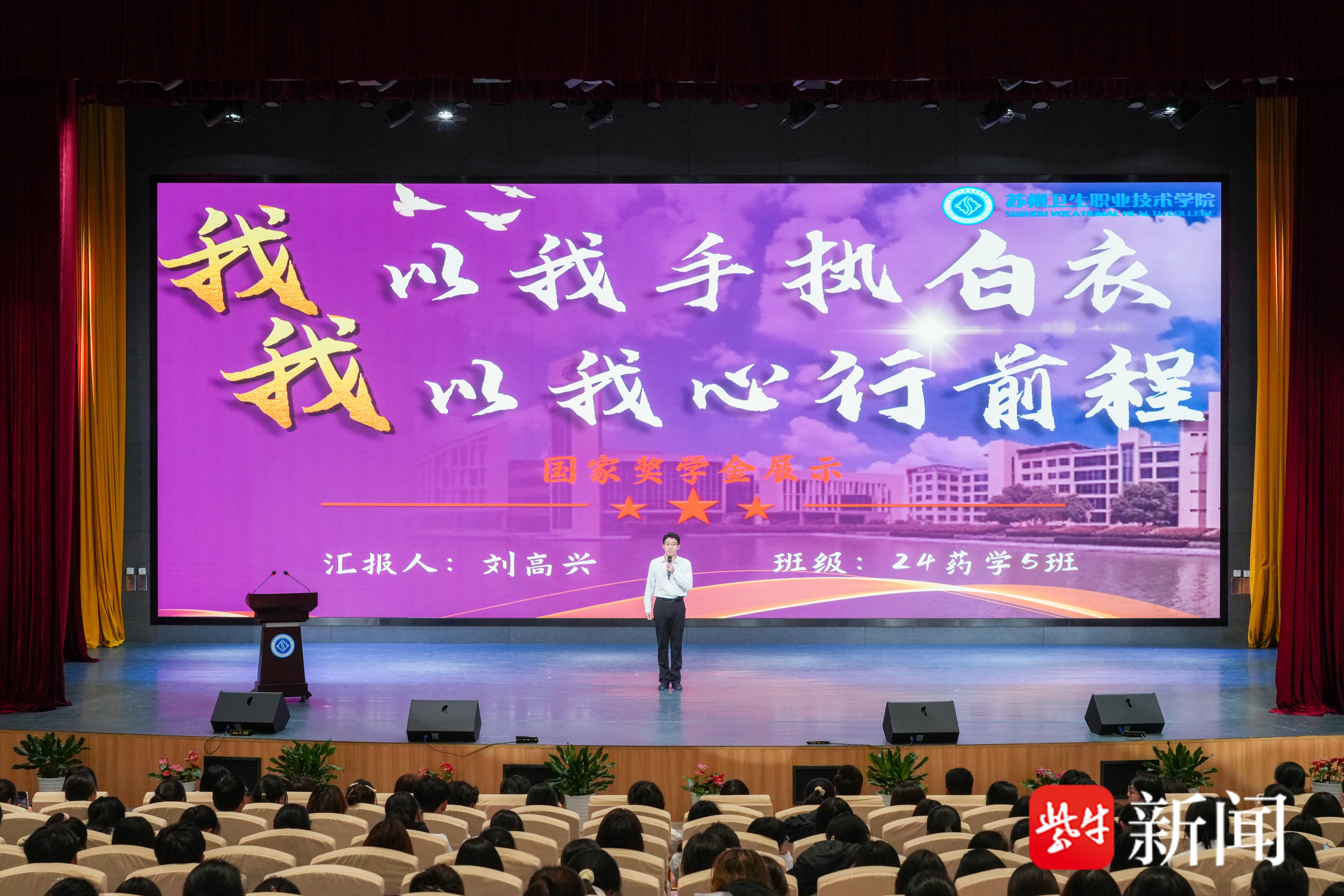 国奖风采展示环节中,来自24药学5班的刘高兴以“我以我手执白衣,我以我心行前程”为主题,从立学、立身、立行三个维度彰显药学学子担当,为在场师生呈现了一堂生动的成长励志课。