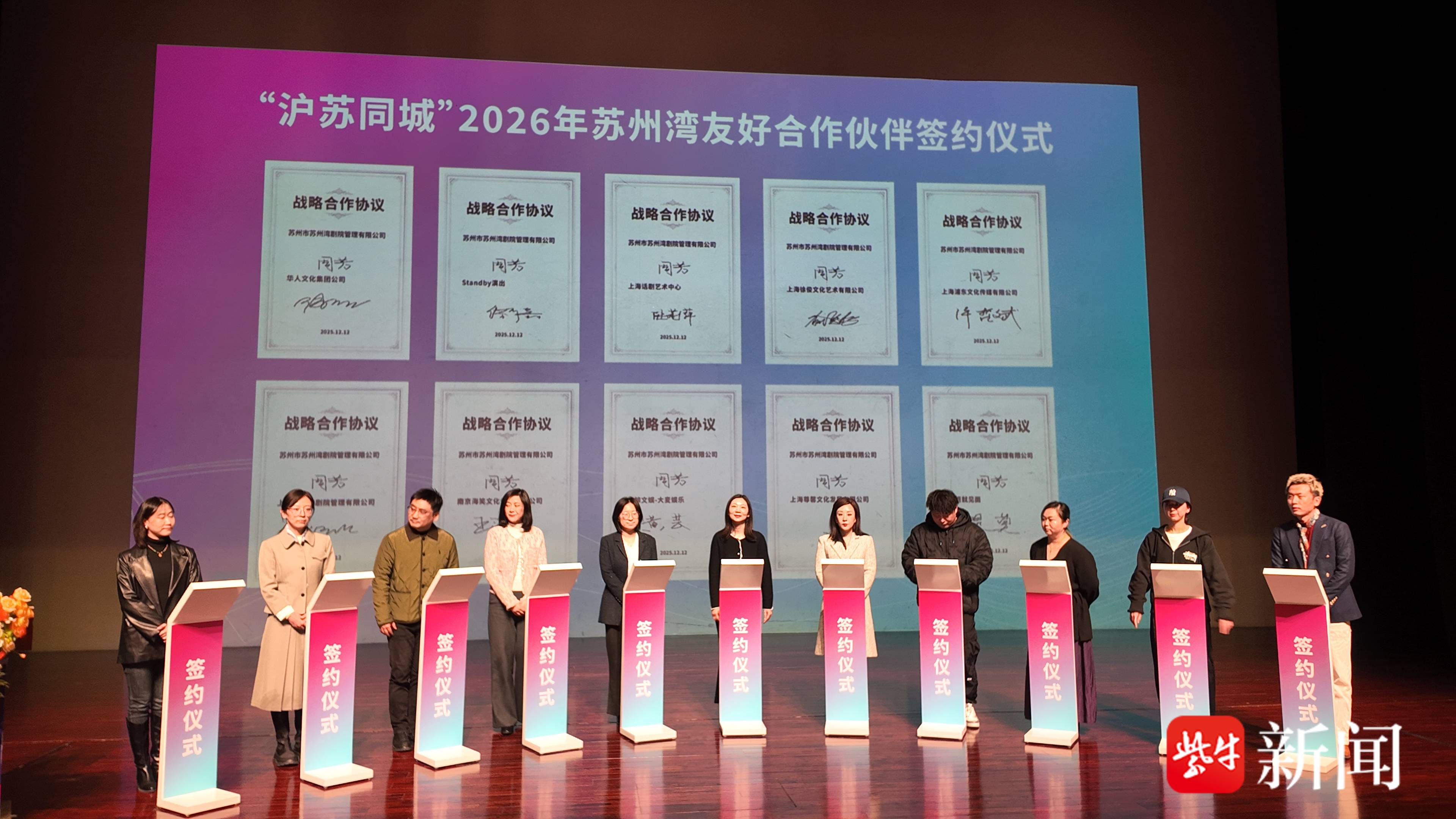 “沪苏同城”2026年苏州湾友好合作伙伴的集体签约将本次活动推向了一个新高度。苏州湾大剧院与上海话剧艺术中心等来自上海的十家重要文化机构及企业代表共同签署合作协议。未来,苏州湾大剧院将在剧目引进、原创制作、市场推广等方面与这些伙伴开展深度合作,从单一的演出接收端,转变为资源整合与分发的枢纽。