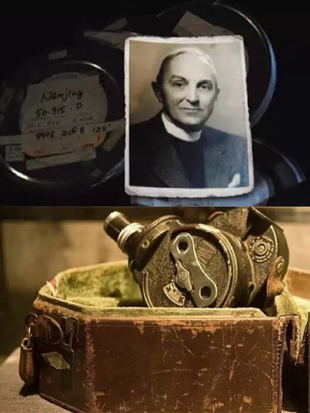 上图:1937年,爷爷约翰·马吉拍摄的夏淑琴家受害后的现场;下图:2018年,孙子克里斯·马吉与夏淑琴的合影