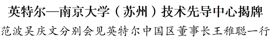 近日,苏州市委书记范波,苏州市委副书记、市长吴庆文分别会见了英特尔中国区董事长王稚聪一行。中国科学院院士、南京大学原校长吕建参加有关会见。其间,英特尔—南京大学(苏州)技术先导中心揭牌。双方一致表示将进一步加强对接合作,抢抓人工智能发展重大机遇,深化产学研用协同创新,共同推动集成电路产业创新发展,携手实现互利共赢。