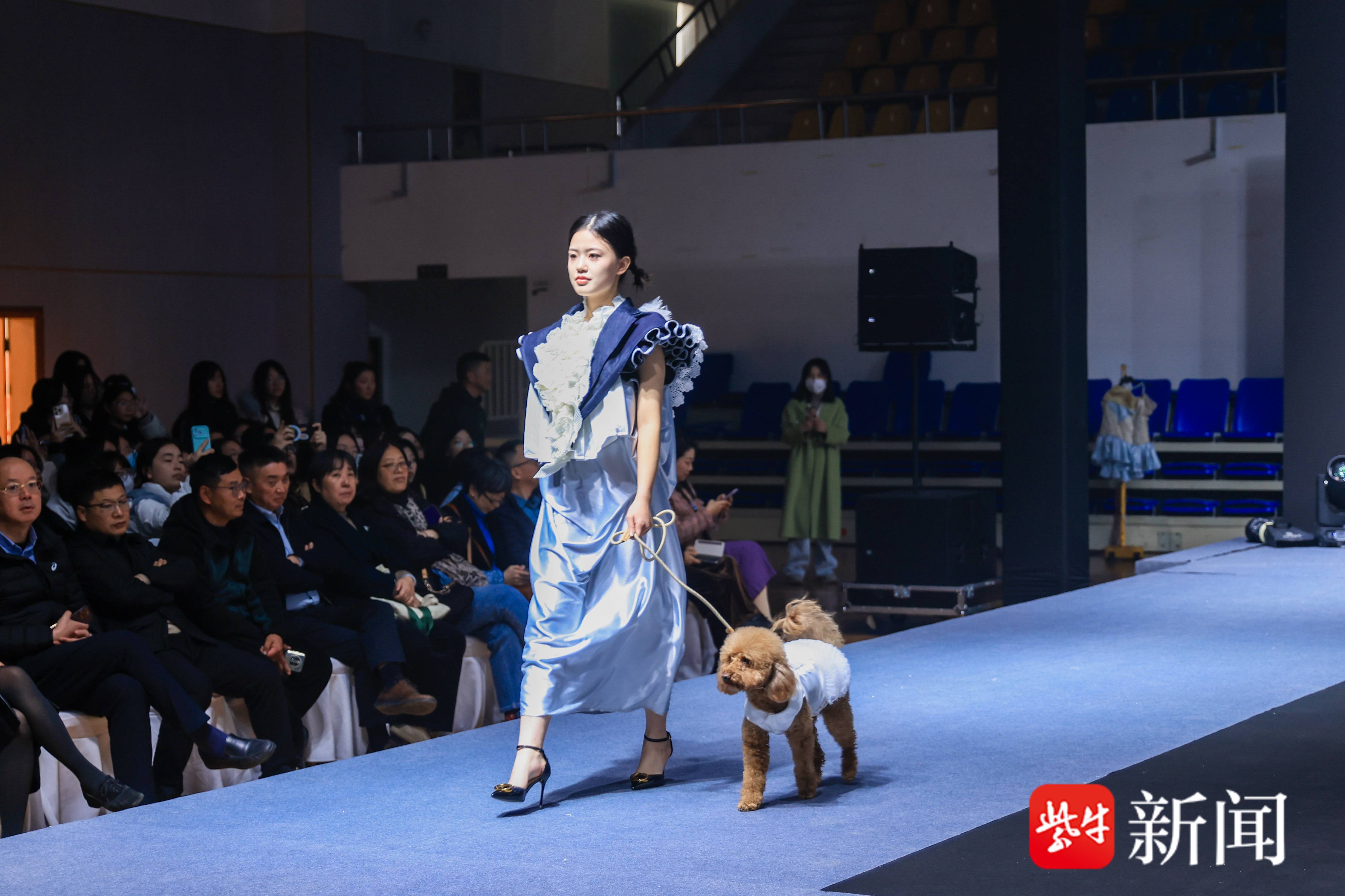 “哇,小狗也走T台,还穿着衣服!太可爱了吧!”记者看到,模特牵着身穿精美服饰的小狗走上舞台,赢得观众称赞。22届优秀毕业生姚依蓓、吴林晓带着自主创立的宠物时尚服装品牌亮相现场。她们以宠物经济为立足点,充分发挥专业知识,自主创业,实现了专业技能的市场创新孵化。