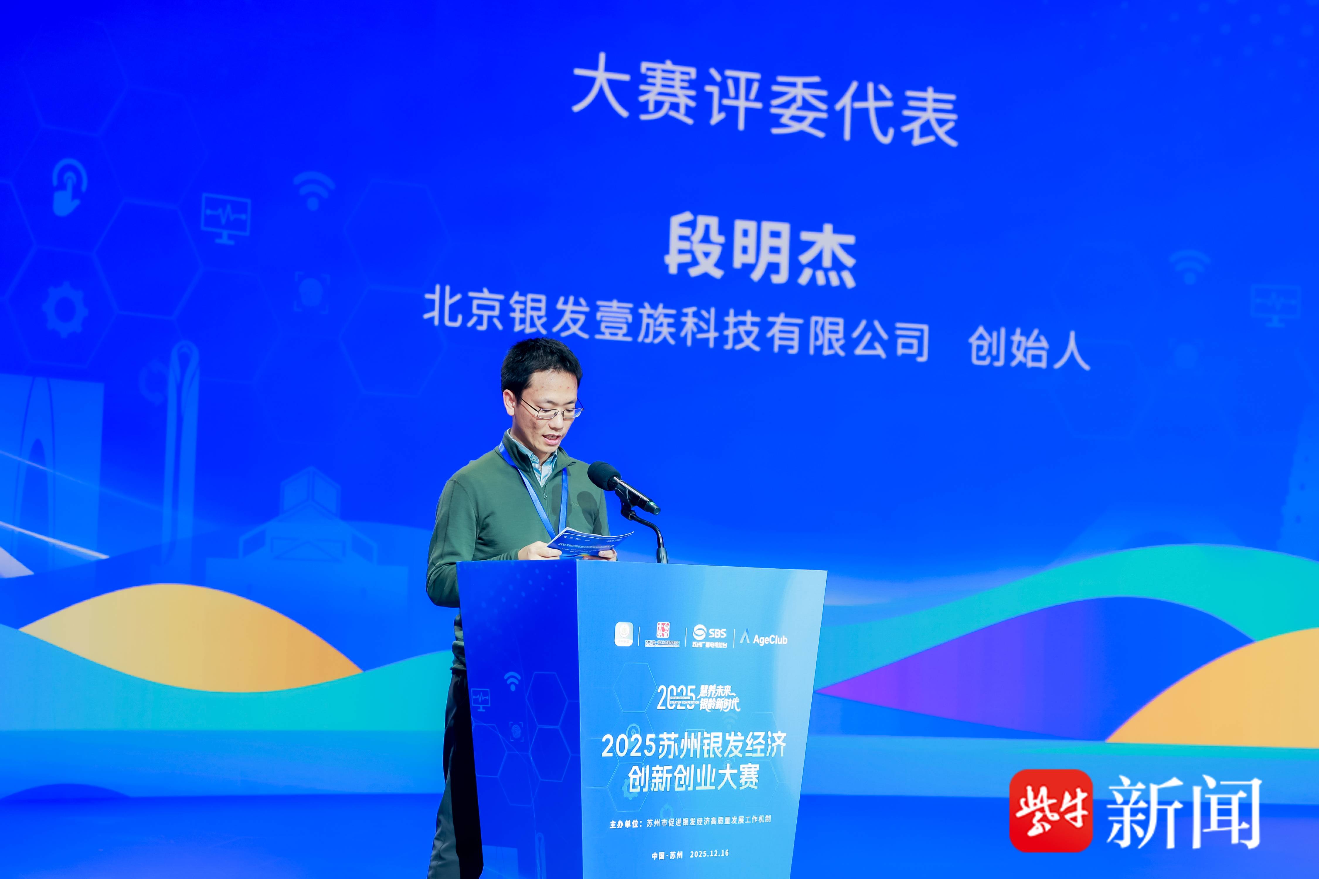 颁奖礼现场同步进行苏州银发经济产业推介。苏州市民政局介绍了苏州老龄化现状及银发经济产业布局情况。随着养老服务需求持续增长,银发经济正成为新的发展蓝海。围绕项目成长需求,苏州为参赛团队提供政策对接、投融资支持、应用场景验证等多元化扶持资源,助力创新成果加速落地。